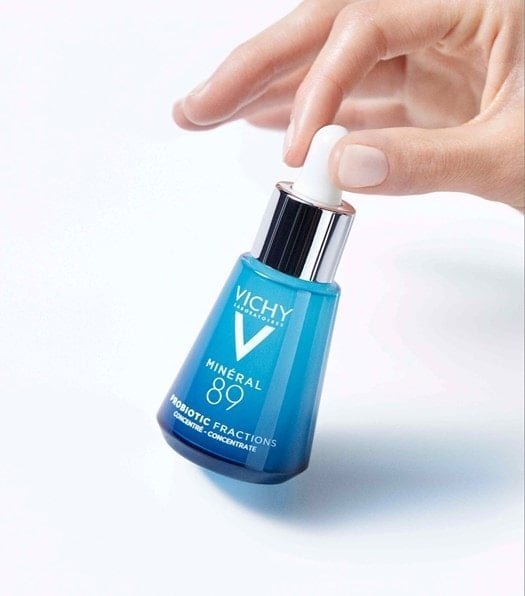 O Sérum Redutor de Linhas Vichy Minéral 89 Probiotic Fractions é o único da categoria composto por Frações Probióticas potencializadas por Água Vulcânica de Vichy e 4% de Niacinamida. O resultado é um produto altamente poderoso, capaz de resgatar a boa saúde da pele de maneira prática e visível. Também acalma, minimiza a sensibilidade e ajuda a reduzir as inflamações.